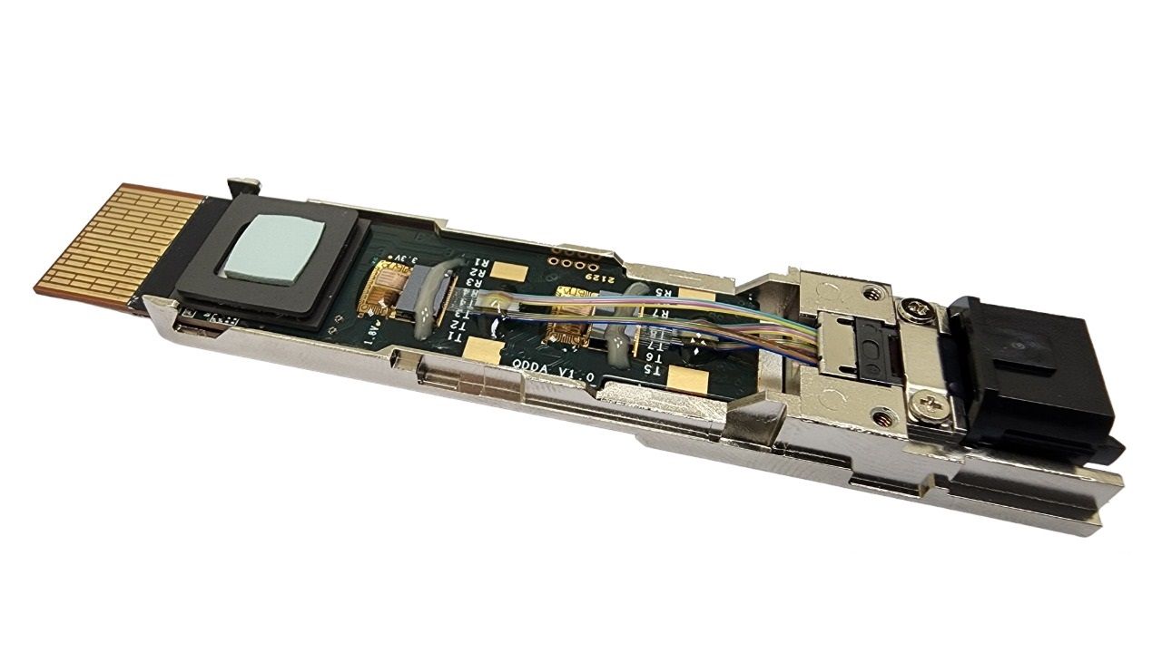 The solution is made possible via smart mechanism designs and high precision assemblies of optical components (VCSEL/PD), driver IC, Transimpedance Amplifier (TIA), controller, passive components and optical fibers.
